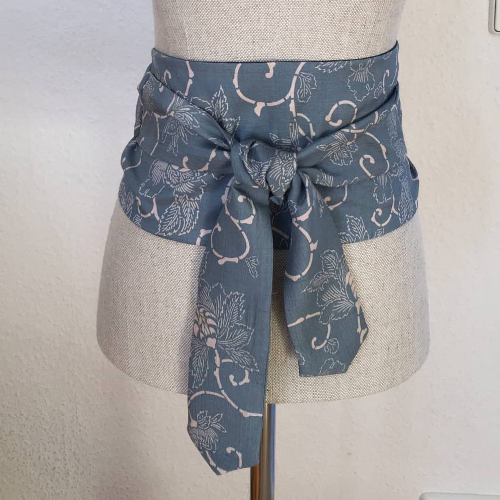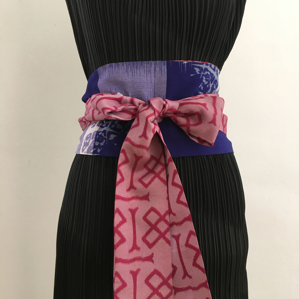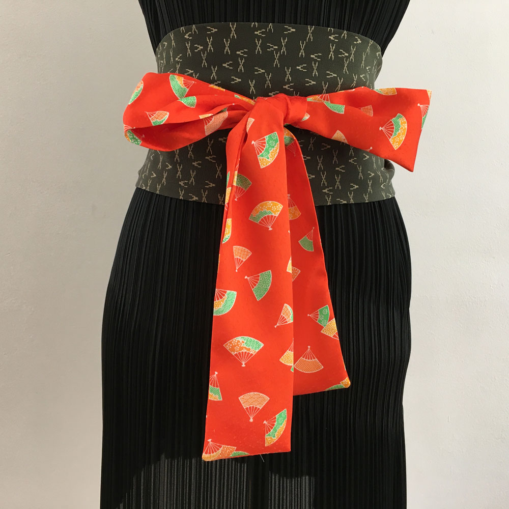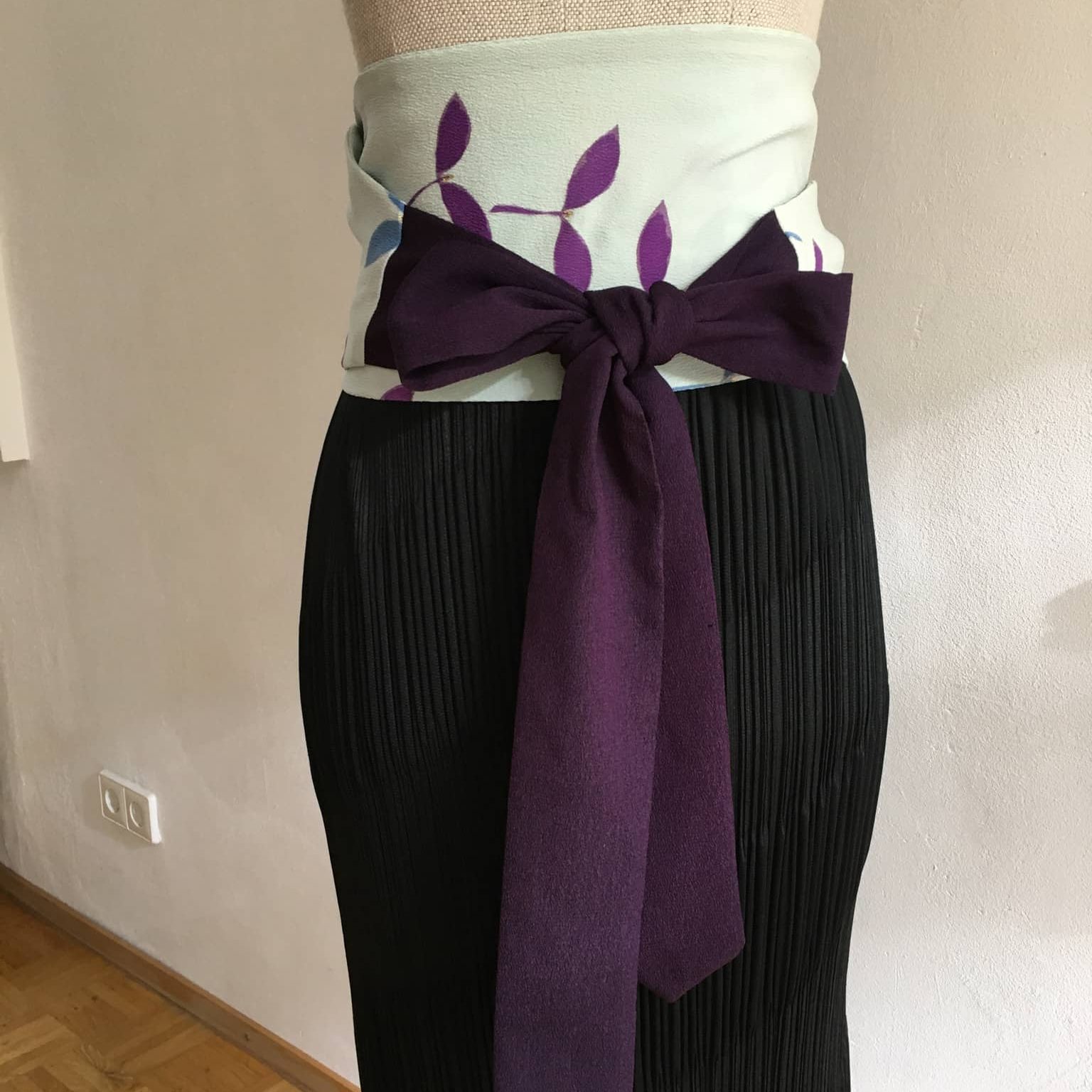 Obi Gürtel besteht aus drei Teilen: ein Mittelteil, Stoffbahn halbiert, und beiden Enden, Kragenteil halbiert. Mehr zum Was ist Kimono.