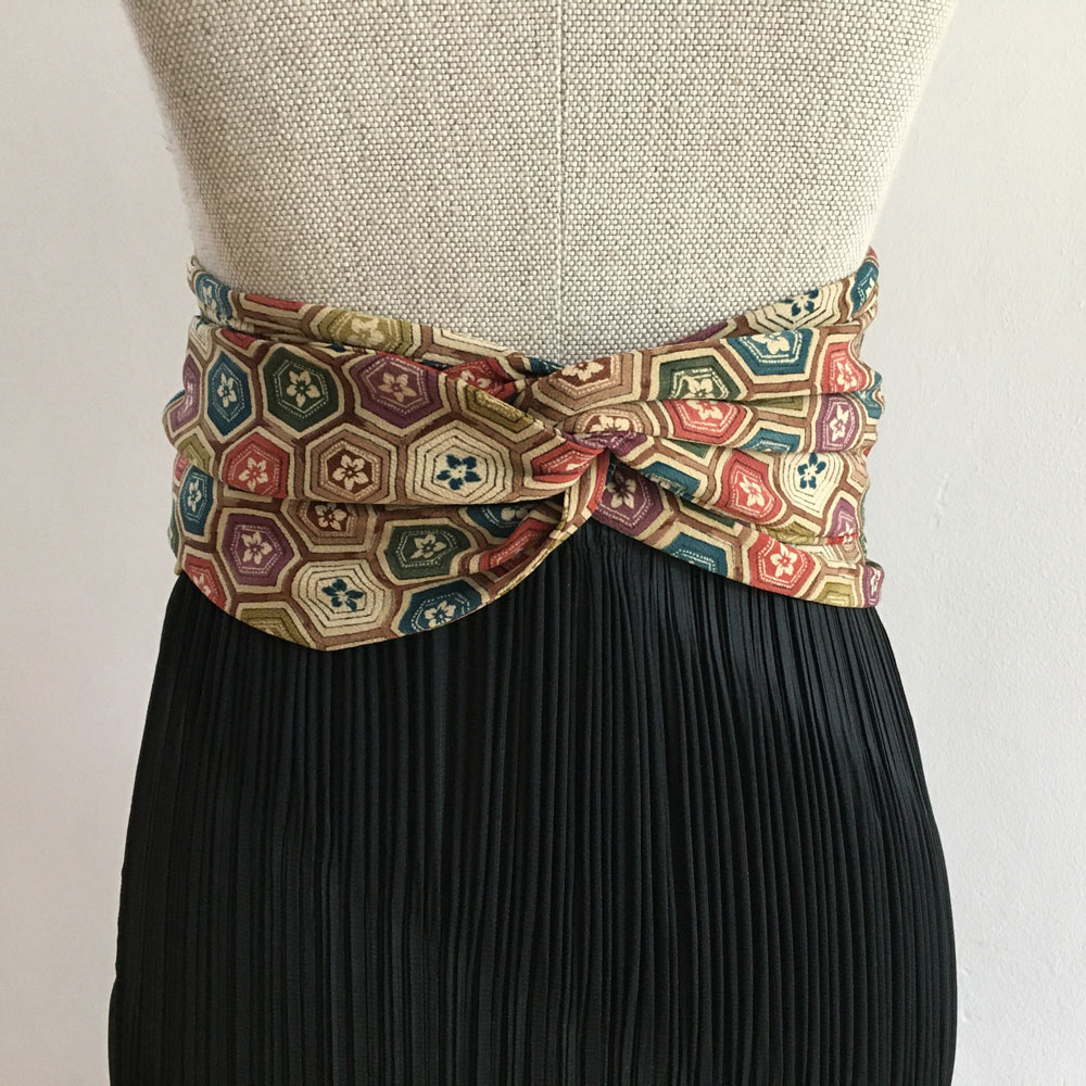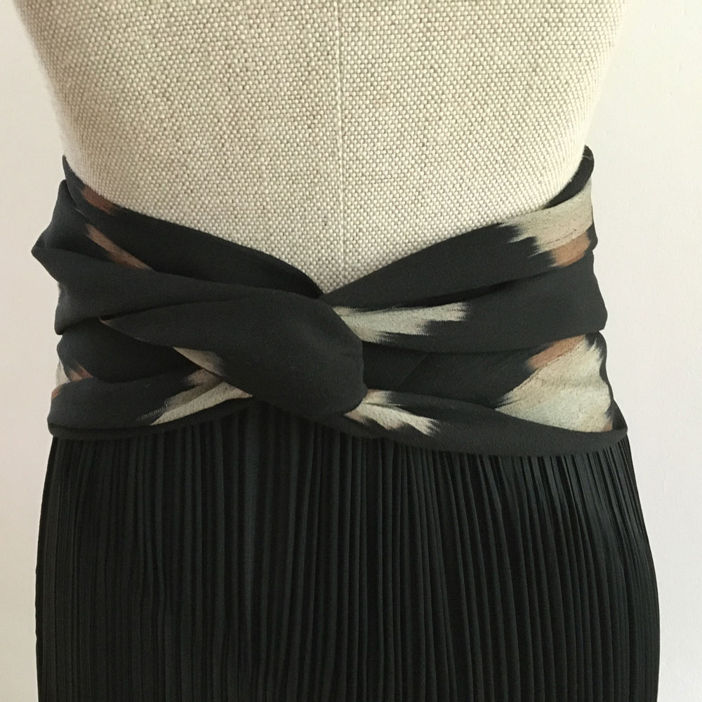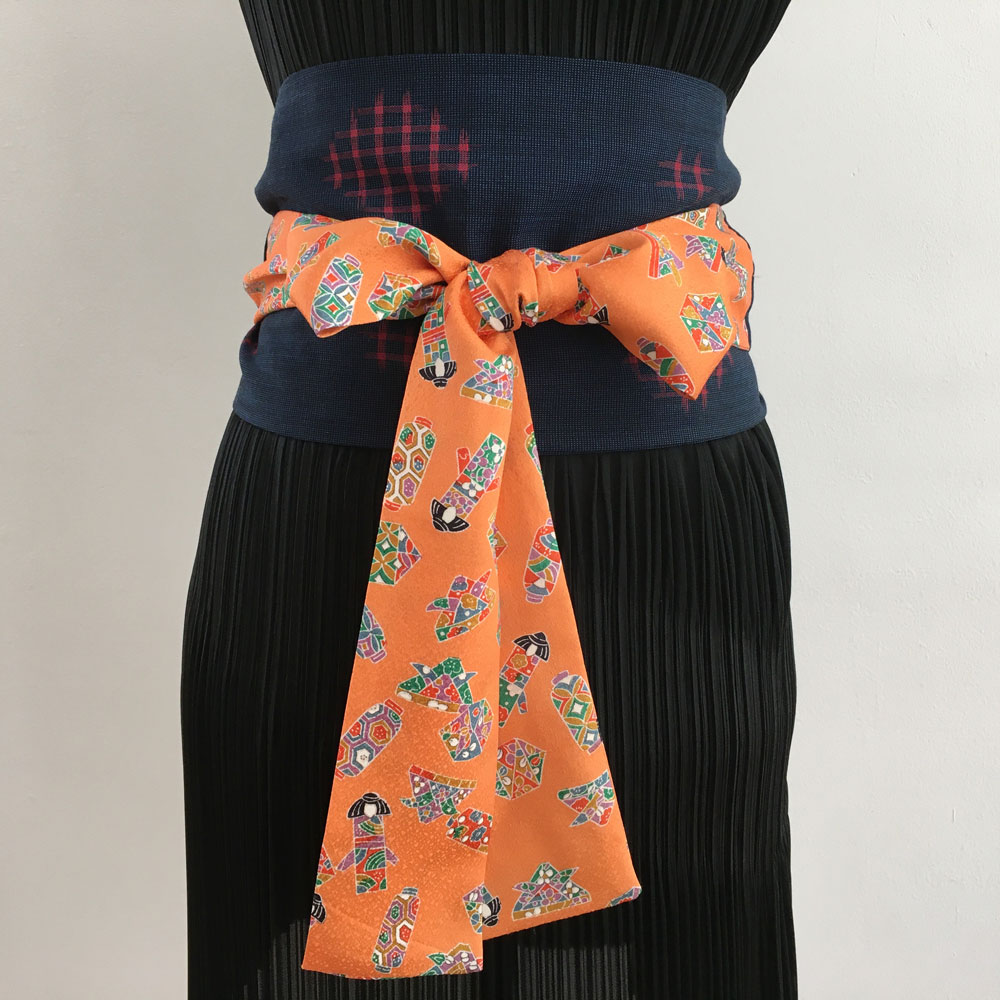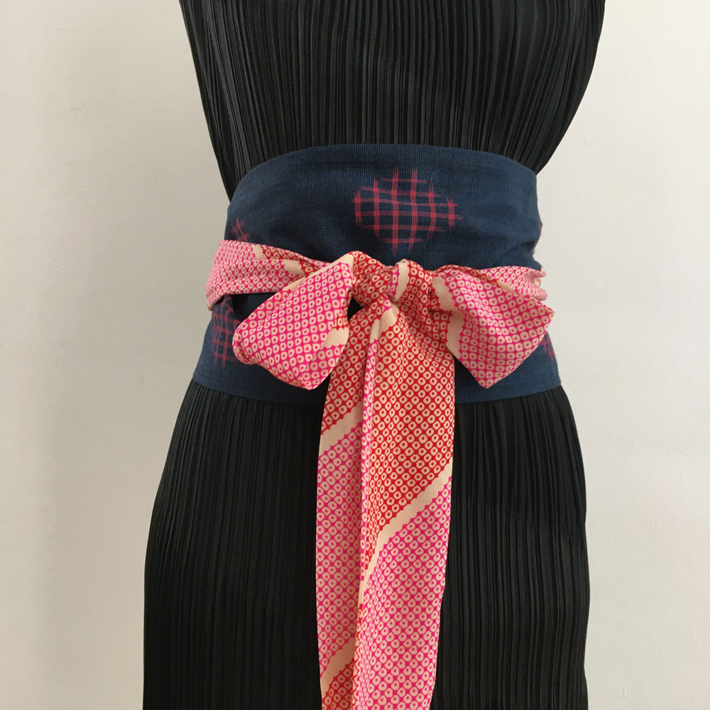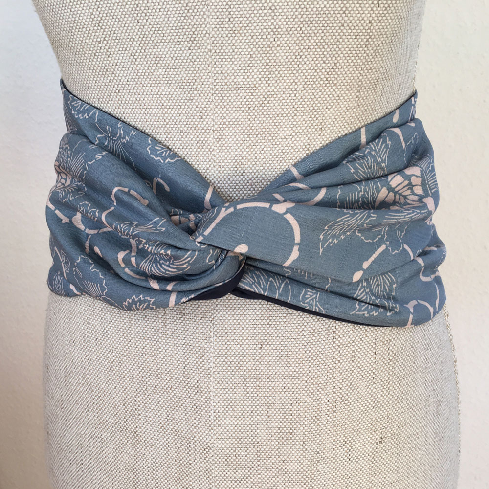 Obi Gürtel besteht aus drei Teilen: ein Mittelteil, Stoffbahn halbiert, und beiden Enden, Kragenteil halbiert. Mehr zum Was ist Kimono.