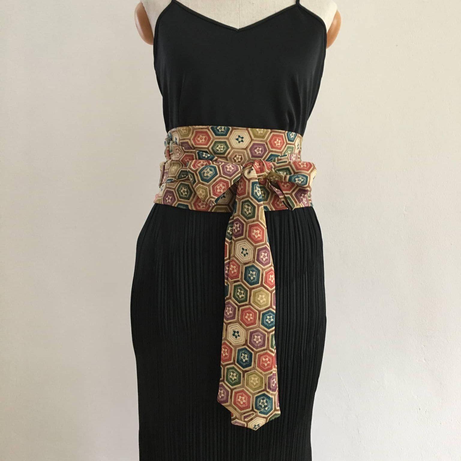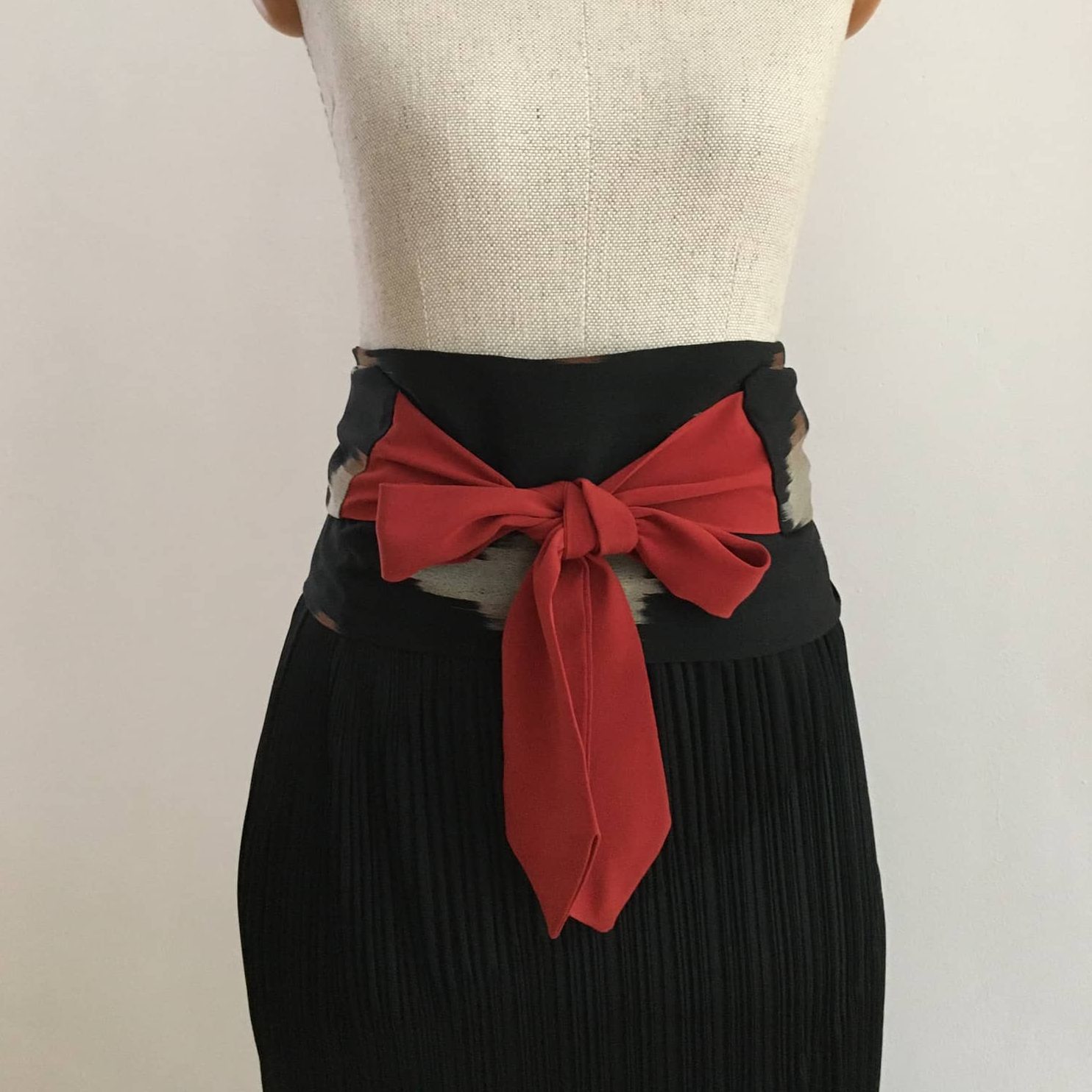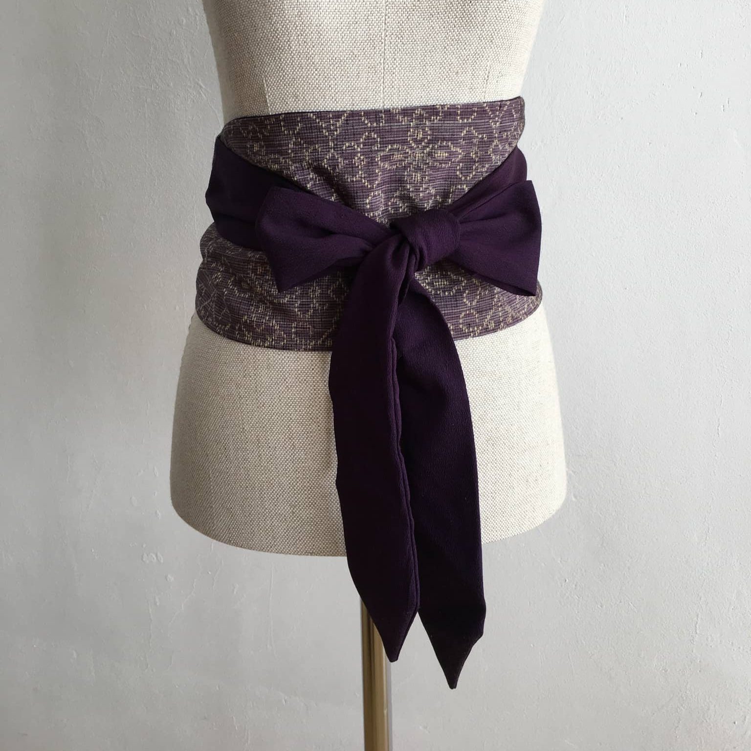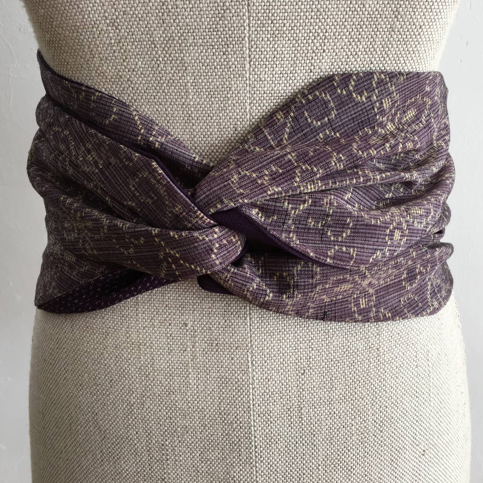 Obi Gürtel besteht aus drei Teilen: ein Mittelteil, Stoffbahn halbiert, und beiden Enden, Kragenteil halbiert. Mehr zum Was ist Kimono.