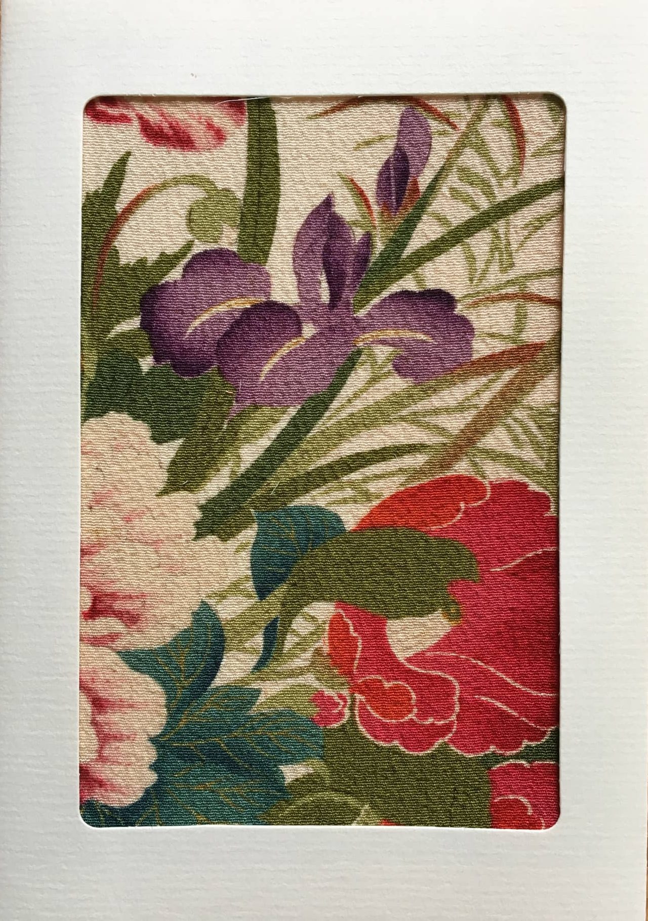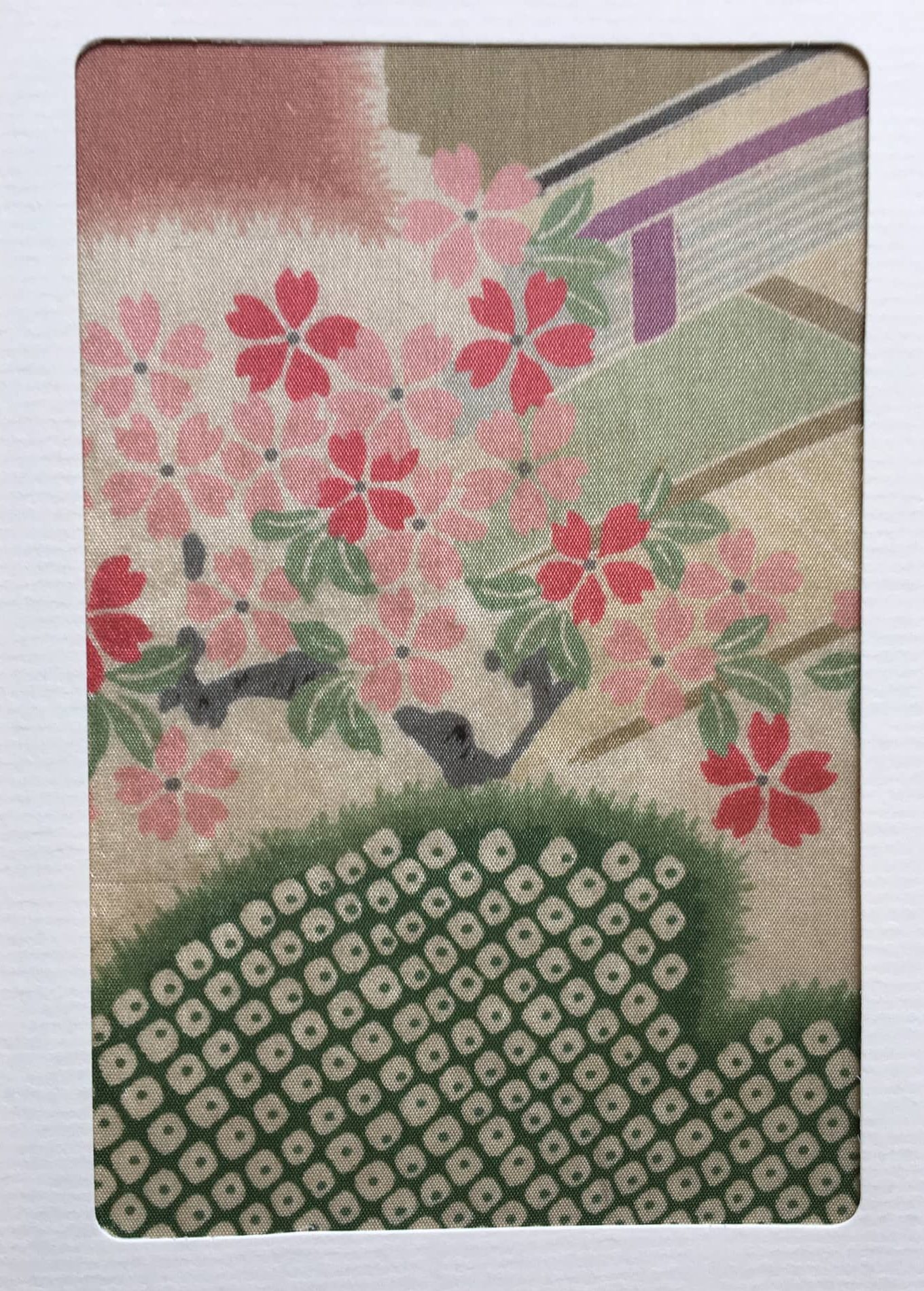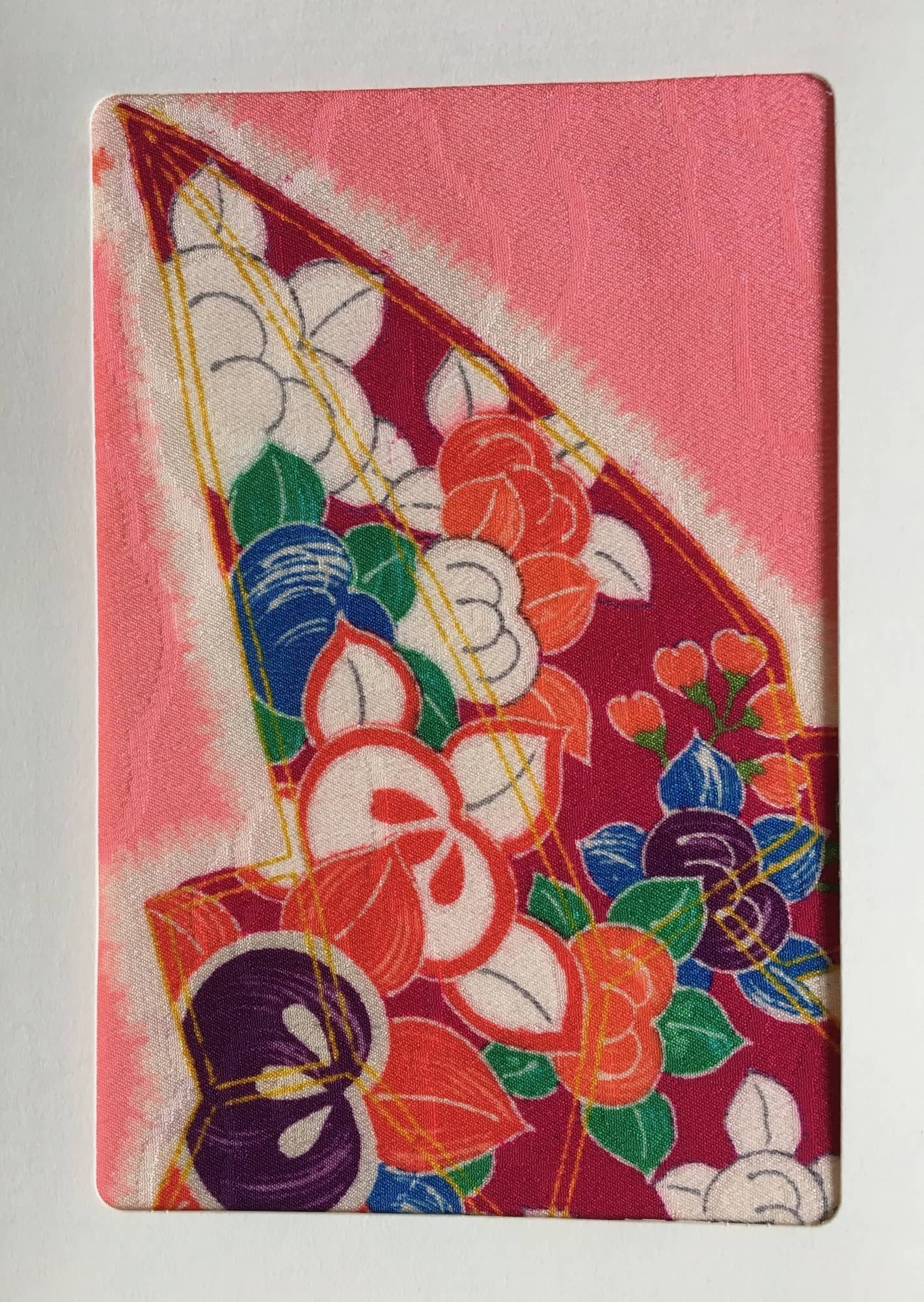 Grußkarten aus alten Kimono Stoffen. Das schönste Detail der Kmonostoffe wird eingerahmt.