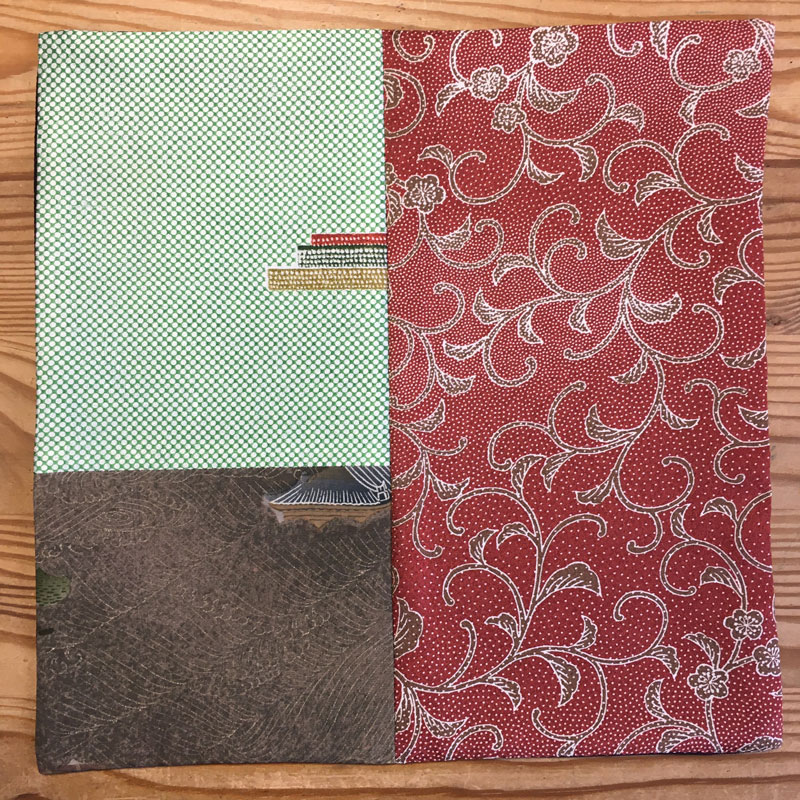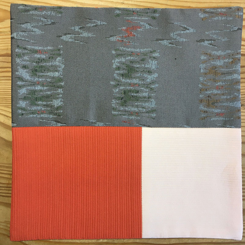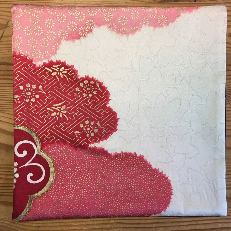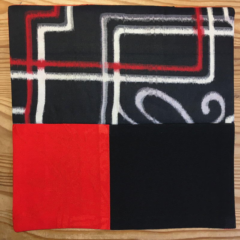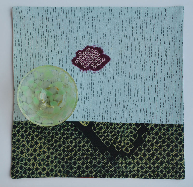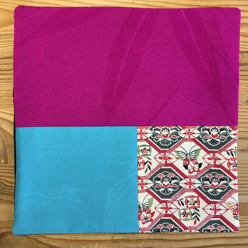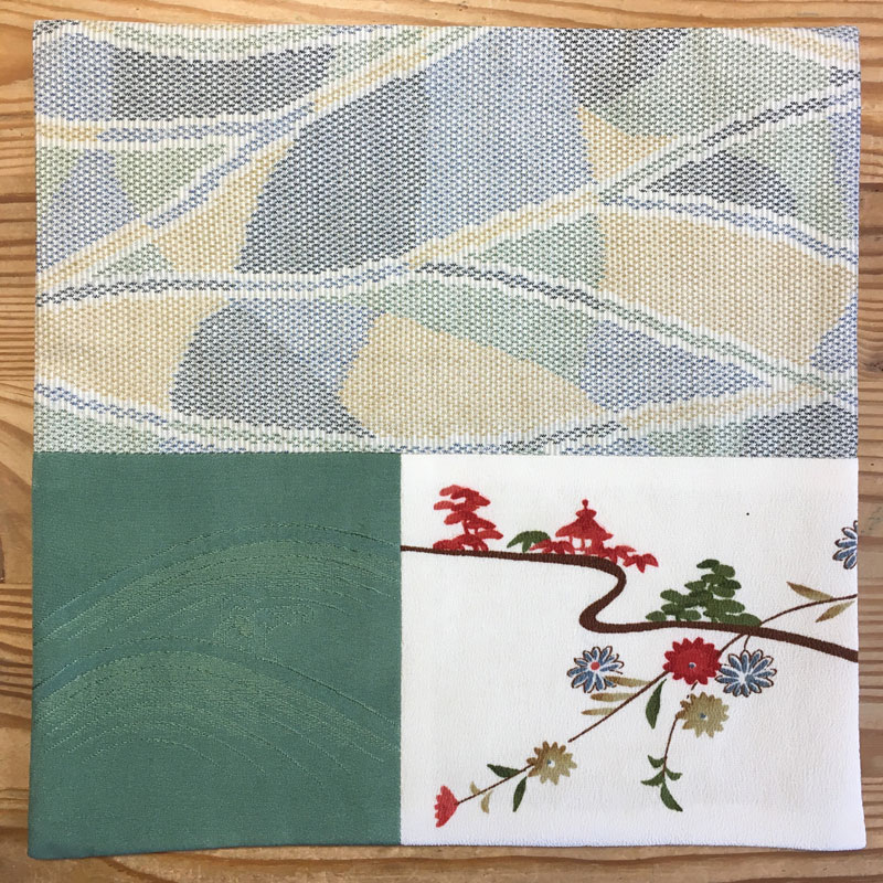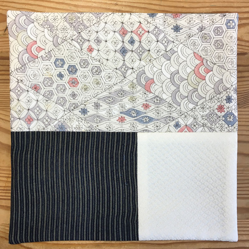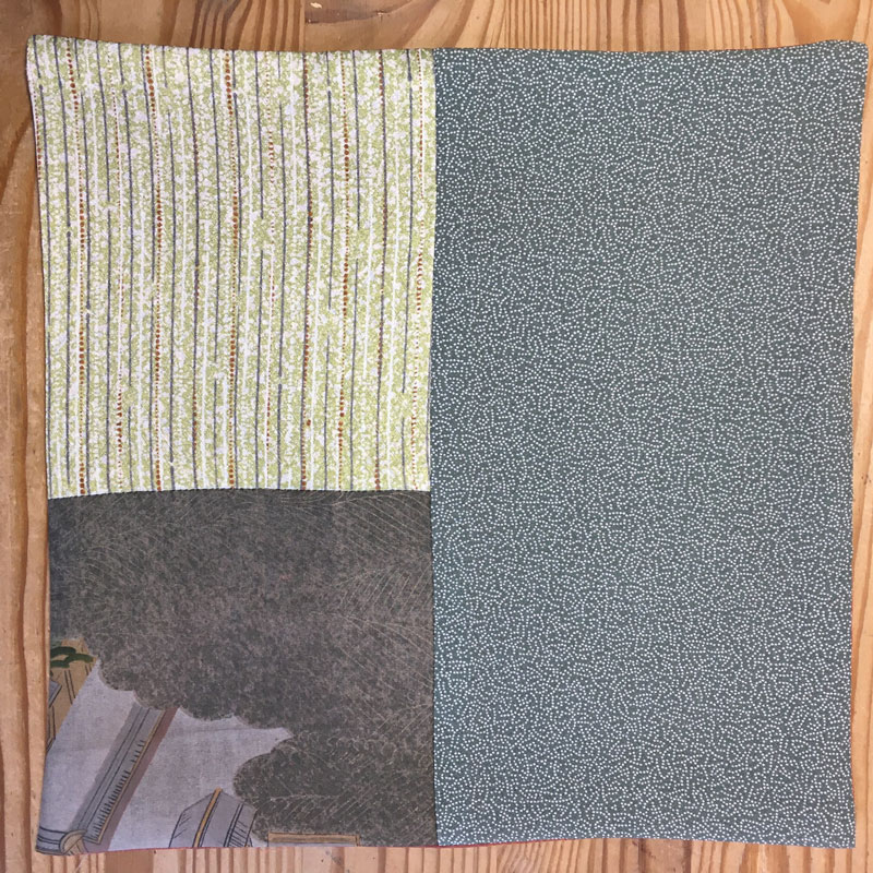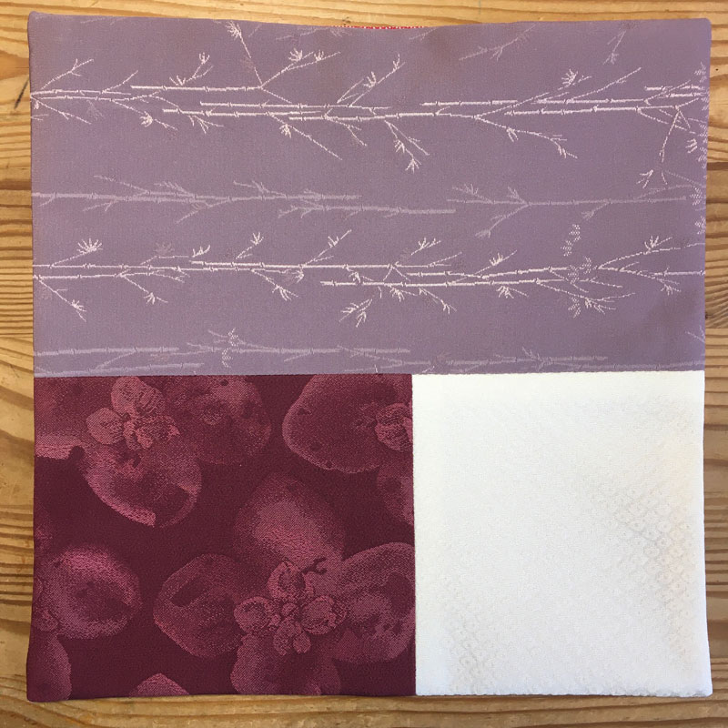 Aus Freude der Verwendung von schönen Seidenstoffen im täglichen Leben entstand diese quadratische Stoffcollage. Bilder ohne Rahmen. Ein Blickfang im Zimmer. Ein fester Platz fürs Mobiltelefon zu Hause, auch für die Lesebrille und den Schlüsselbund. Ein Podest für die schöne Dinge. Ein Platzhalter!