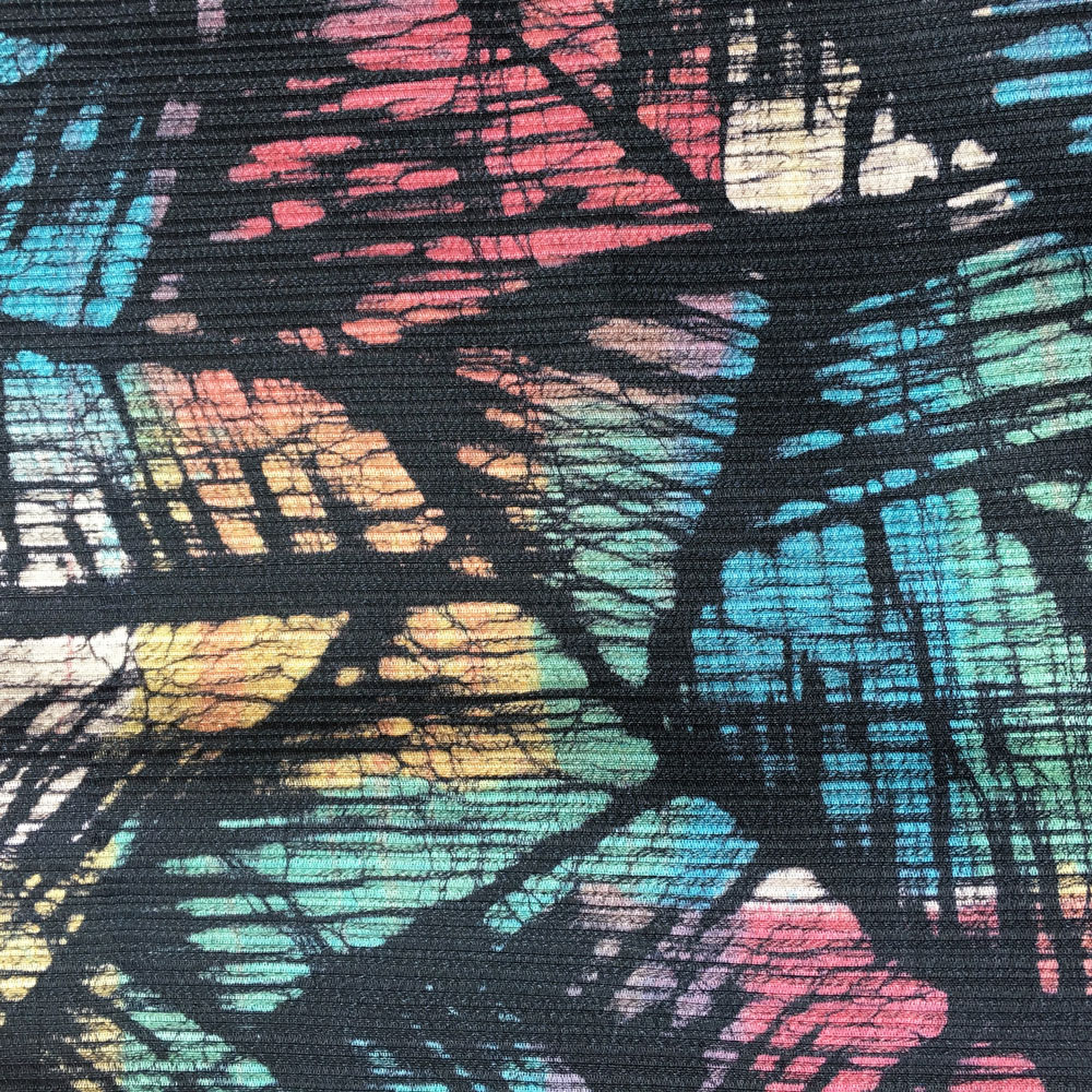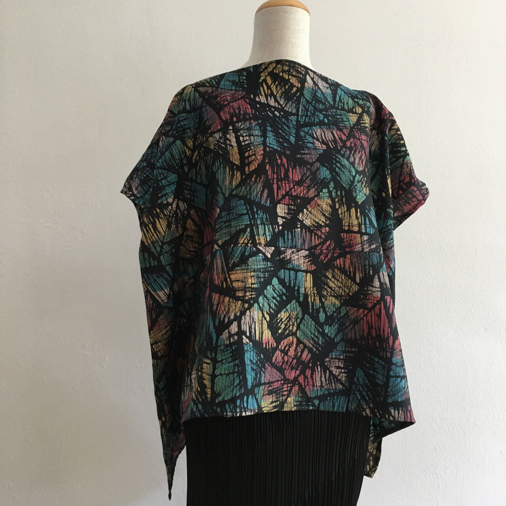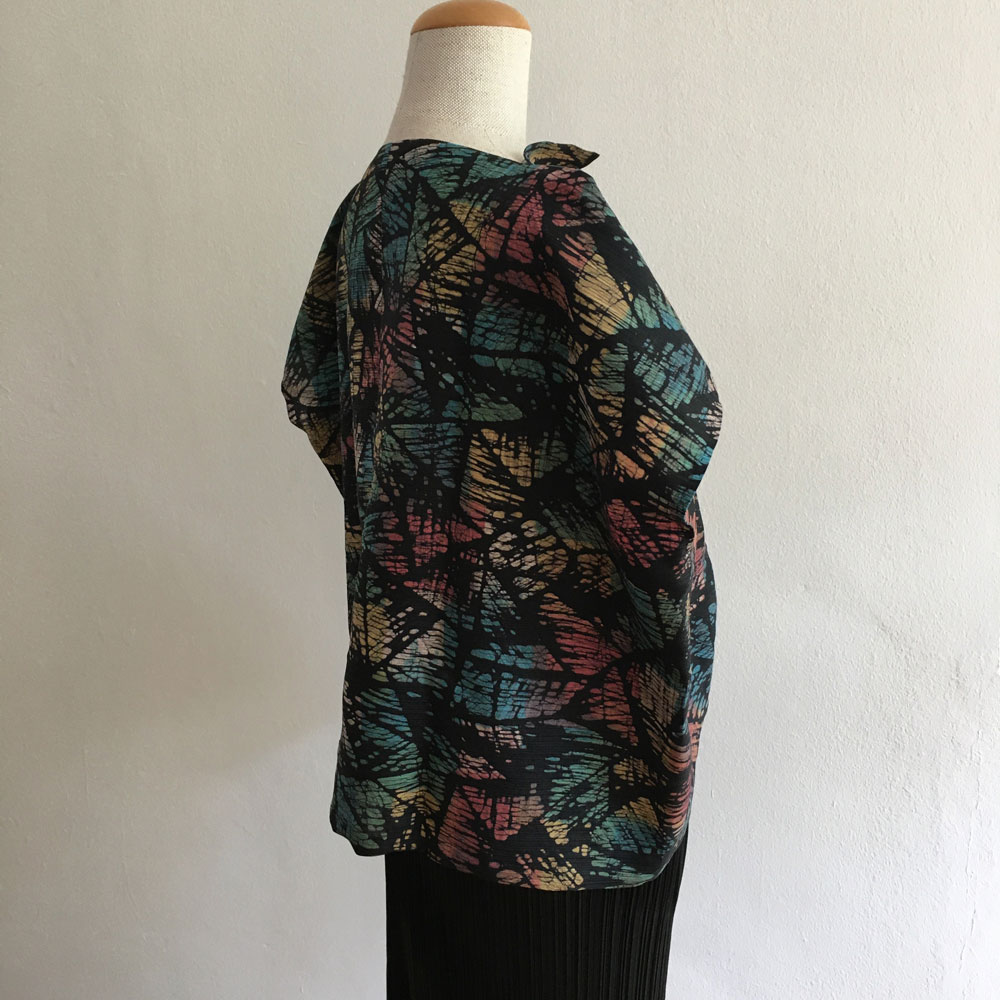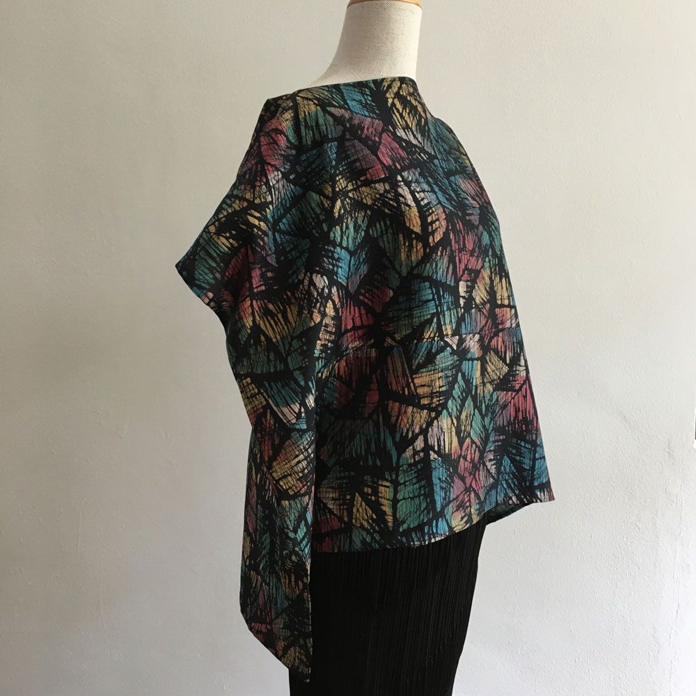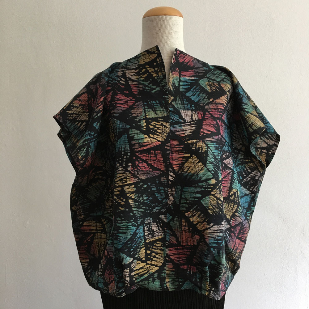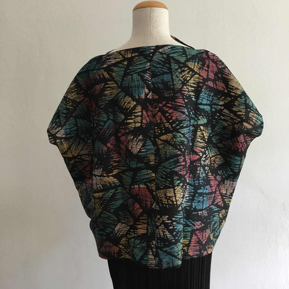 Aus diesem farbenfrohen Seidenstoff wurde die leichte Kimonojacke Haori genäht. Aufgetrennt und gewaschen reicht der Stoff für zwei Sommerblusen.