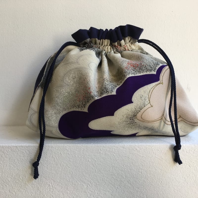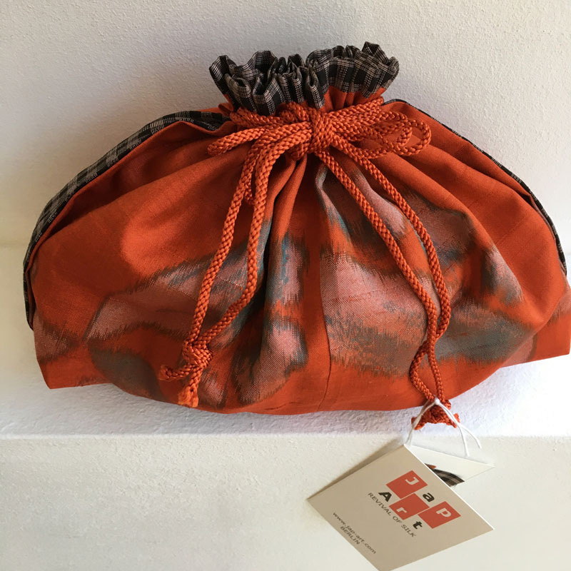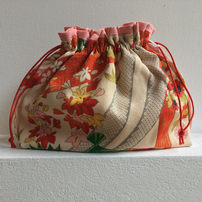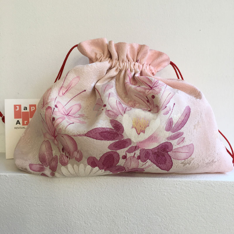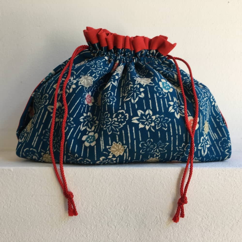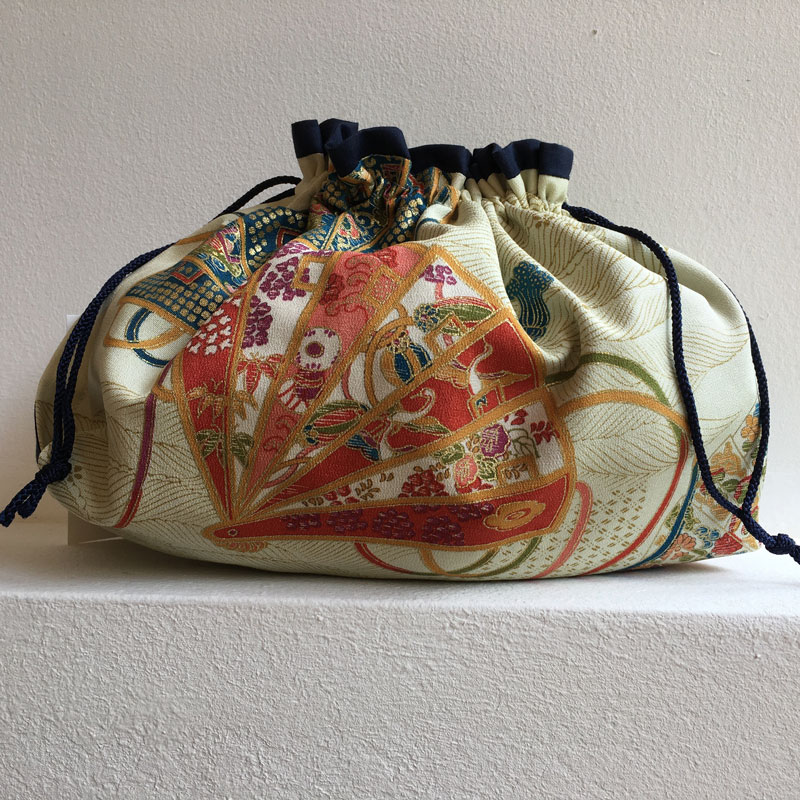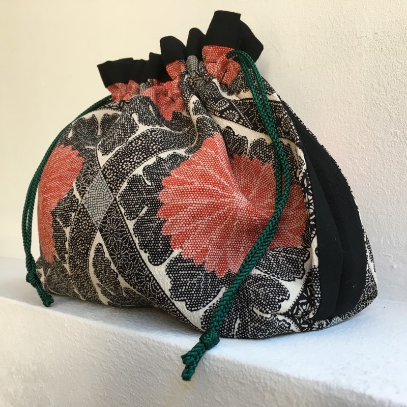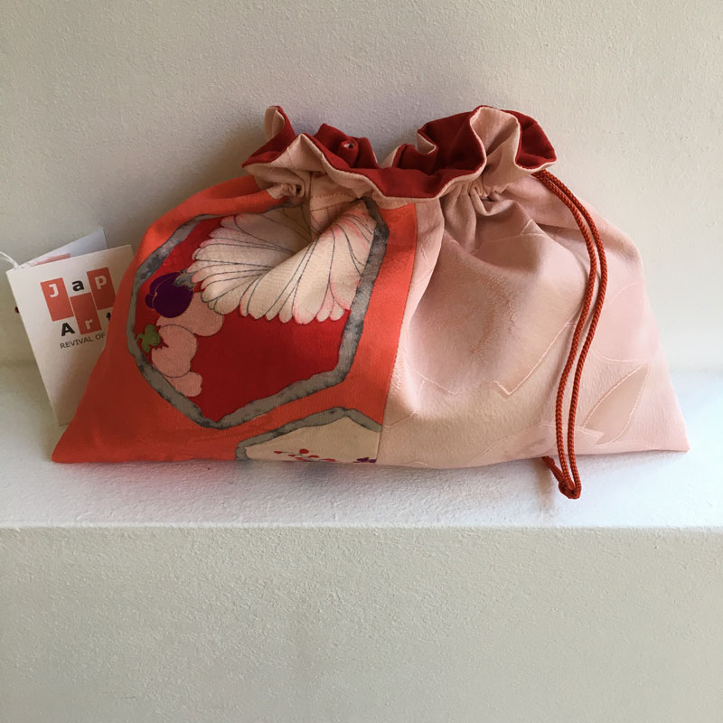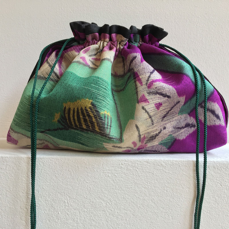 In Japan bezeichnet man den kleinen Stoffbeutel Kinchaku-Bukuro. Es gibt sehr viele Variante. Bei dieser Tasche spielt die Farbe des Futterstoffes besondere Rolle.