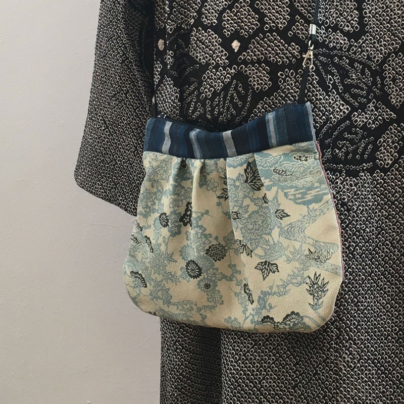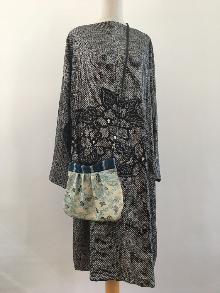 In einem Antiquitätengeschäft in Mishima entdeckte ich den Seidenstoff. Wahrscheinlich ein unbenutzter Anfang. Darauf steht die Qualitätsbezeichnung, die Art des Stoffes und manchmal der Name des Herstellers.